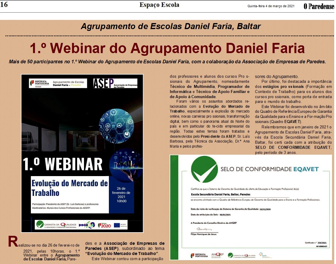 O Centro Qualifica do Agrupamento de Escolas Daniel Faria, Paredes, em parceria com a Biblioteca da Escola Secundária Daniel Faria, Baltar, conta com a adesão e o envolvimento de todos para reforçar a leitura e escrita na população adulta, bem como para transformar a leitura num ato de prazer.
